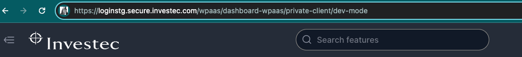 Serve your application on your local machine (e.g. npm run dev) and open the URL (e.g. http://localhost:PORT) in your browser, this should redirect you to Investec Online and enable the development mode.